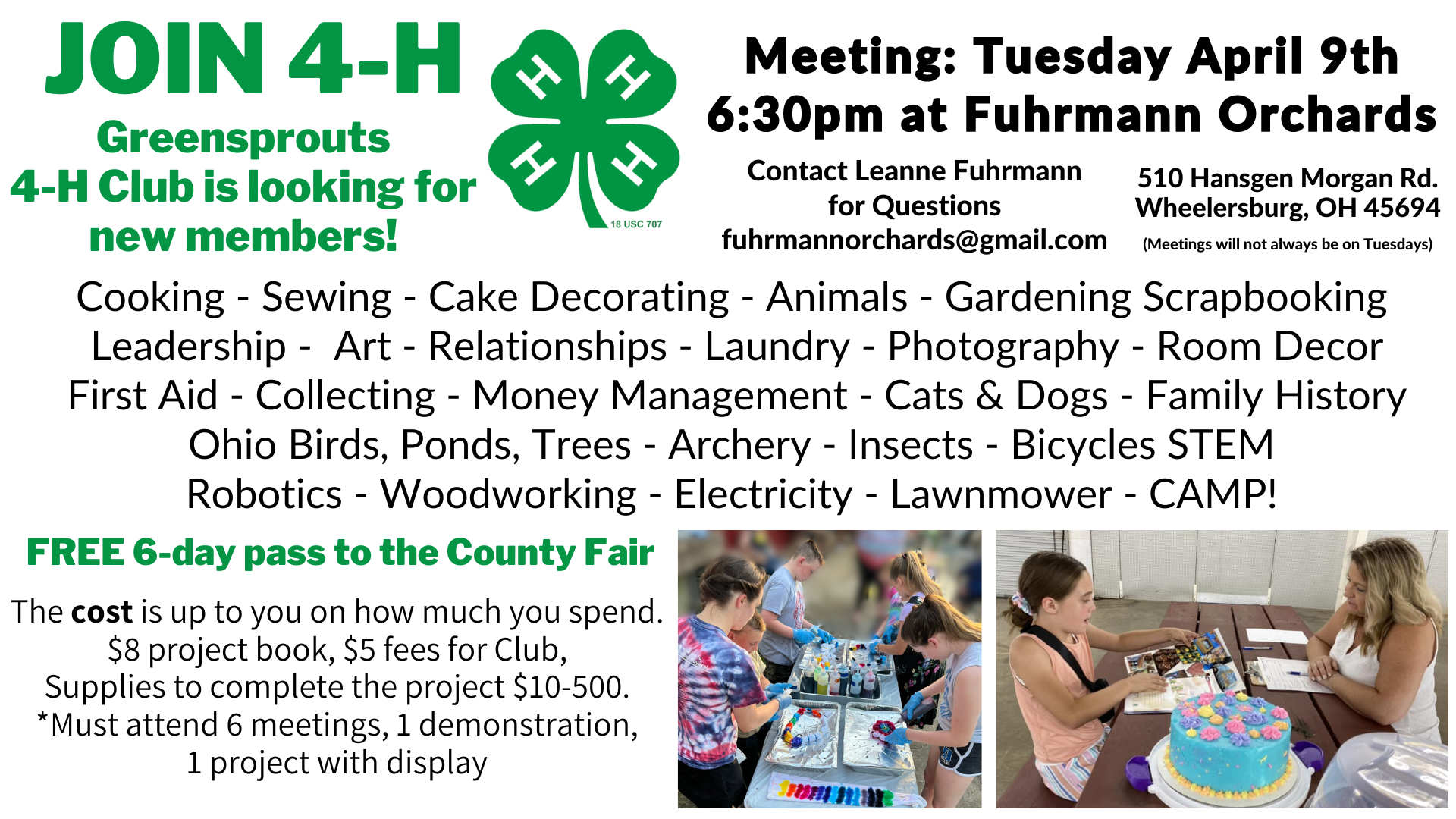 We raise meat goats for 4-H projects, selling processed meat to local customers and for the joy it brings to our family. Leanne raised goats and other animals when she was in Indiana 4-H and started a new herd for the kids when she moved to Ohio after marrying Paul. We have been raising boer meat goats in Scioto County Ohio since 2000 and grow our herd each year by bringing in new genetics with bucks and does. Our does kid every year starting January 1st and we sell them to youth for their 4-H projects. All 5 Fuhrmann Kids showed goats at 4-H open shows, Ohio State Fair and the Scioto County Fair when they were of age to be members. Now we are 4-H volunteers and Leanne is the head of the goat committee in Scioto County. Leanne has seen it all with goats and if you have any questions pertaining to raising, caring for and managing a goat herd, message us.